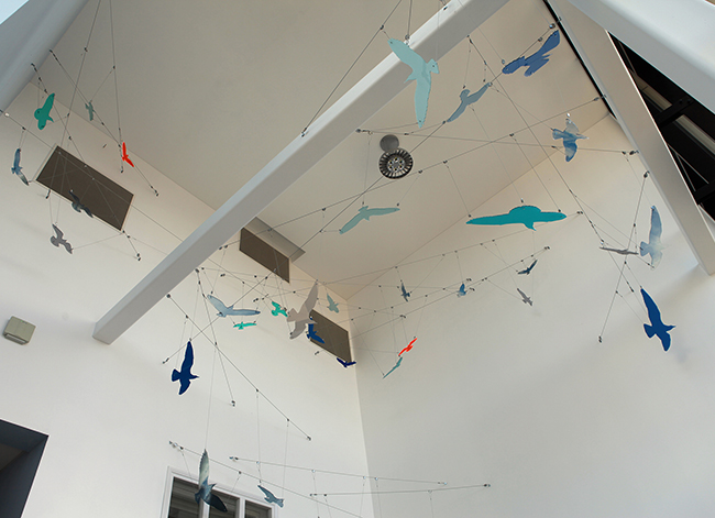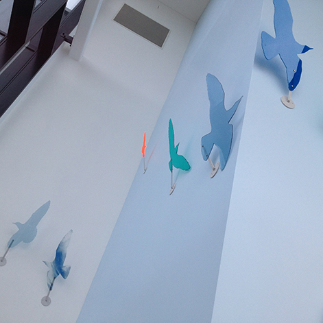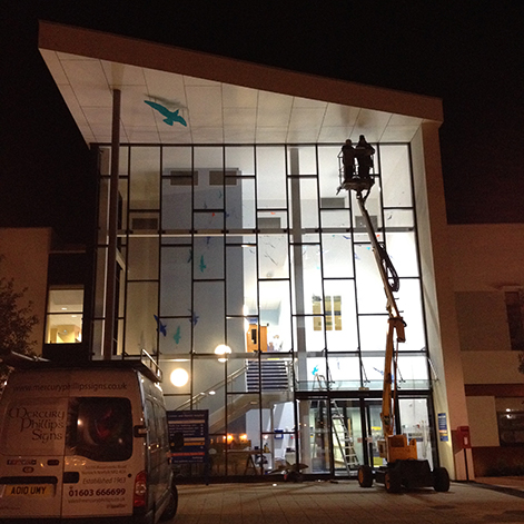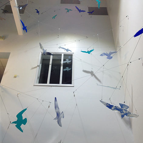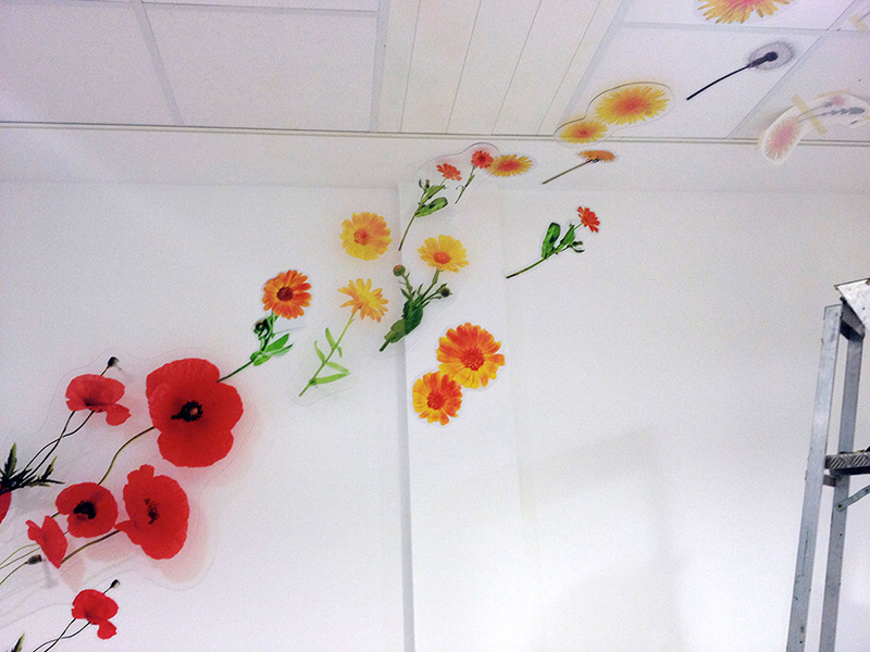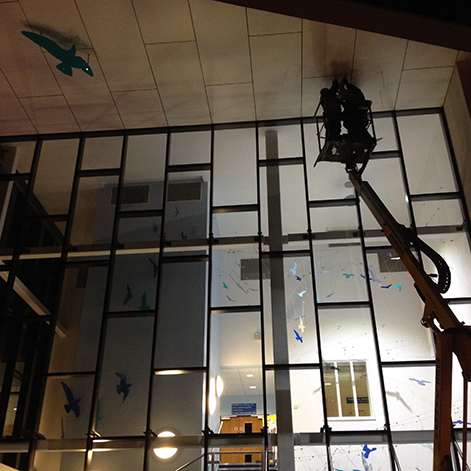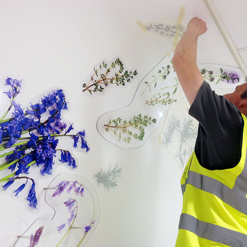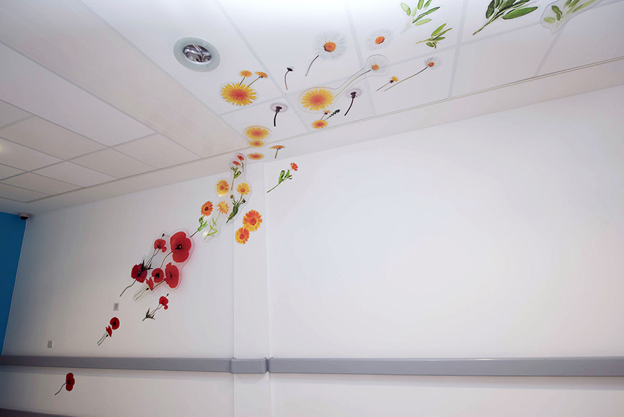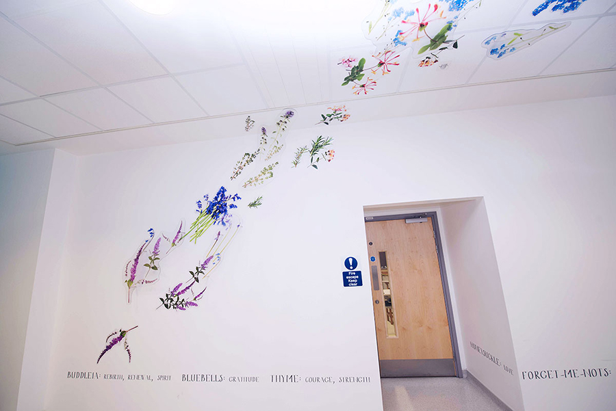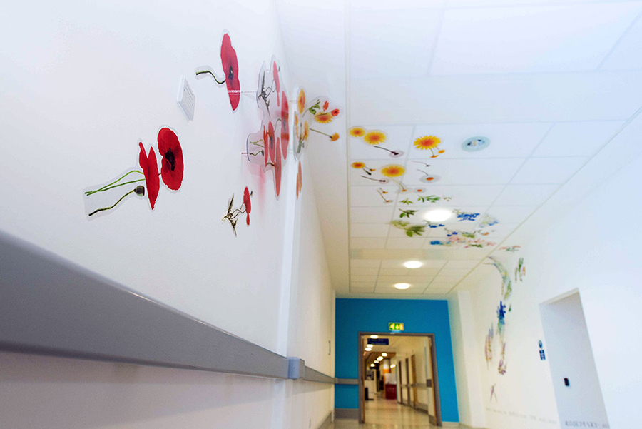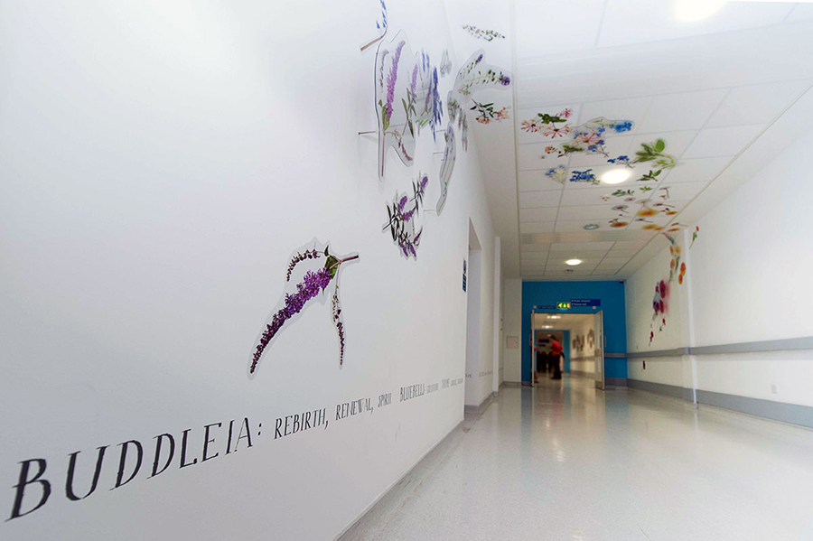 Commissioned by this NHS trust working in consultation with patient and staff groups to design and install a large scale hanging installation both inside the main entrance atrium space and outside the new hospital building.