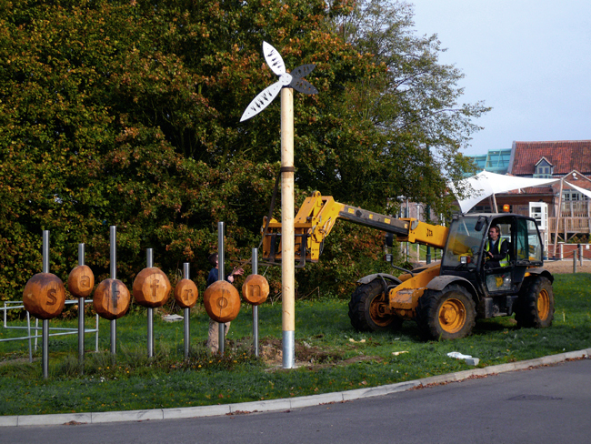 I was comissioned by Fakenham Junior School to design and build in collaborationwith every child this large work which tells the story of the school to celebrate it's 100 year centenary